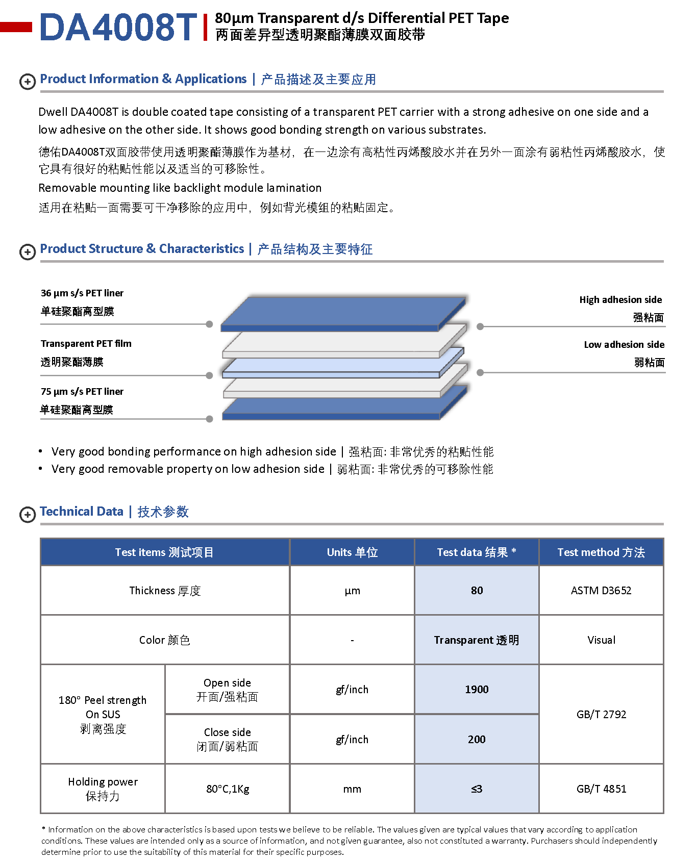 SOLUTION > Double-sided film tape > Dwell DA4008T