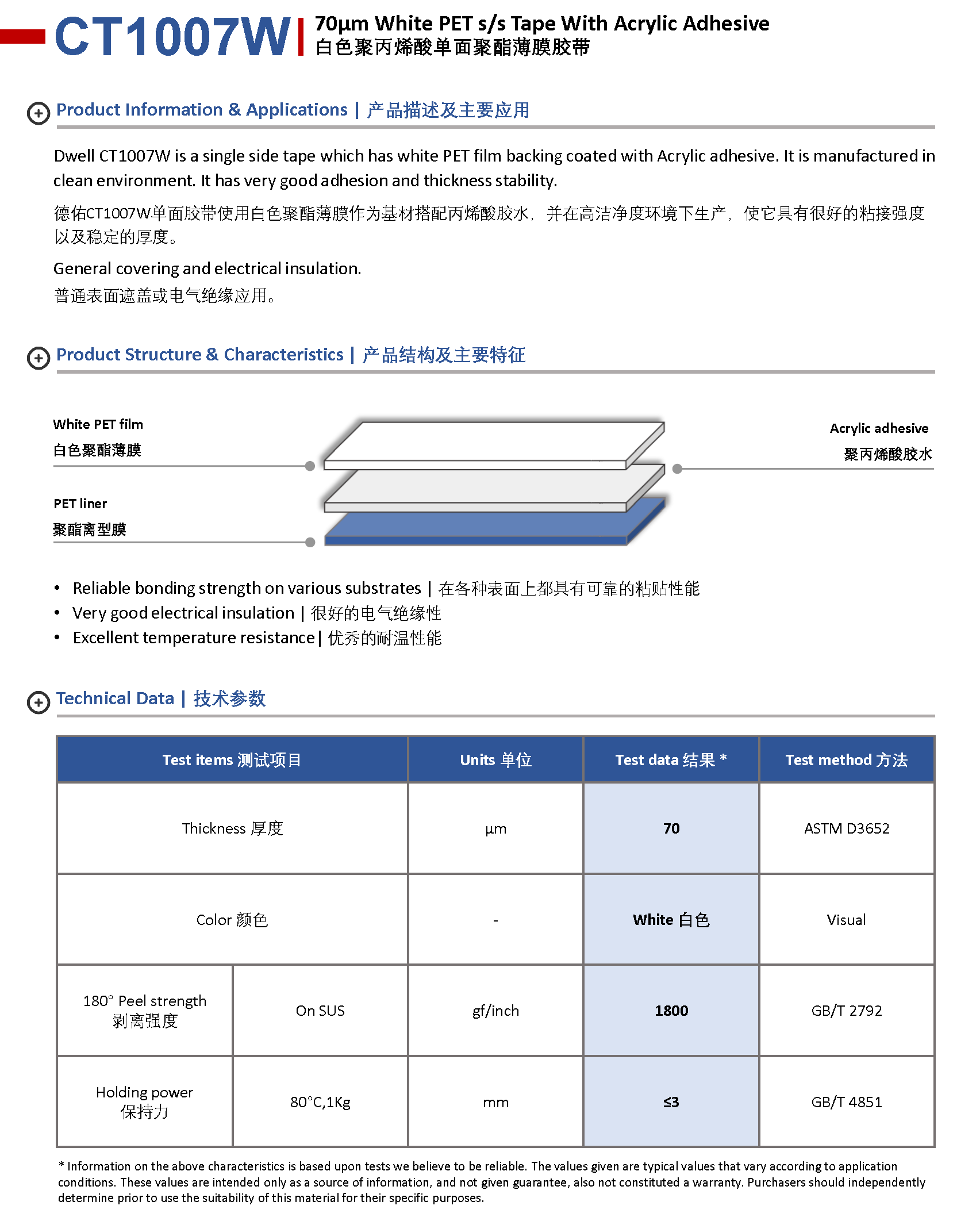 SOLUTION > Single-sided film tape > Dwell CT1007W
