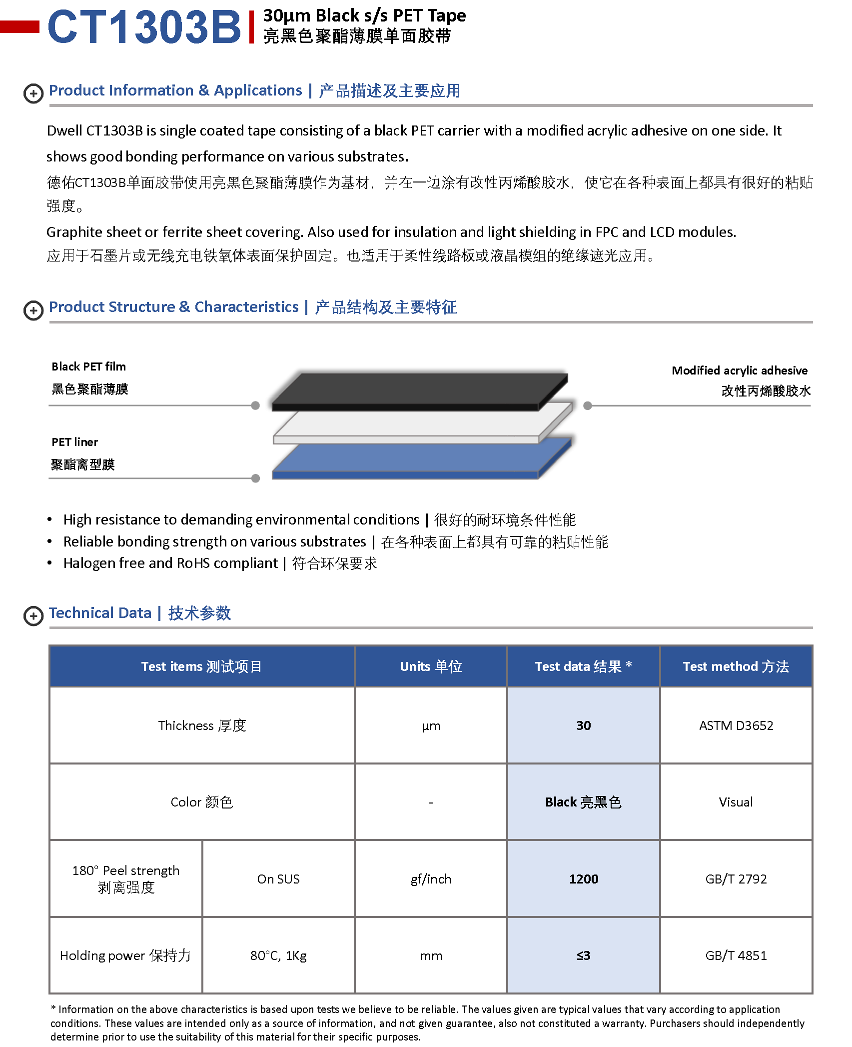 解決方案 > 單面薄膜膠帶 > Dwell CT1303B