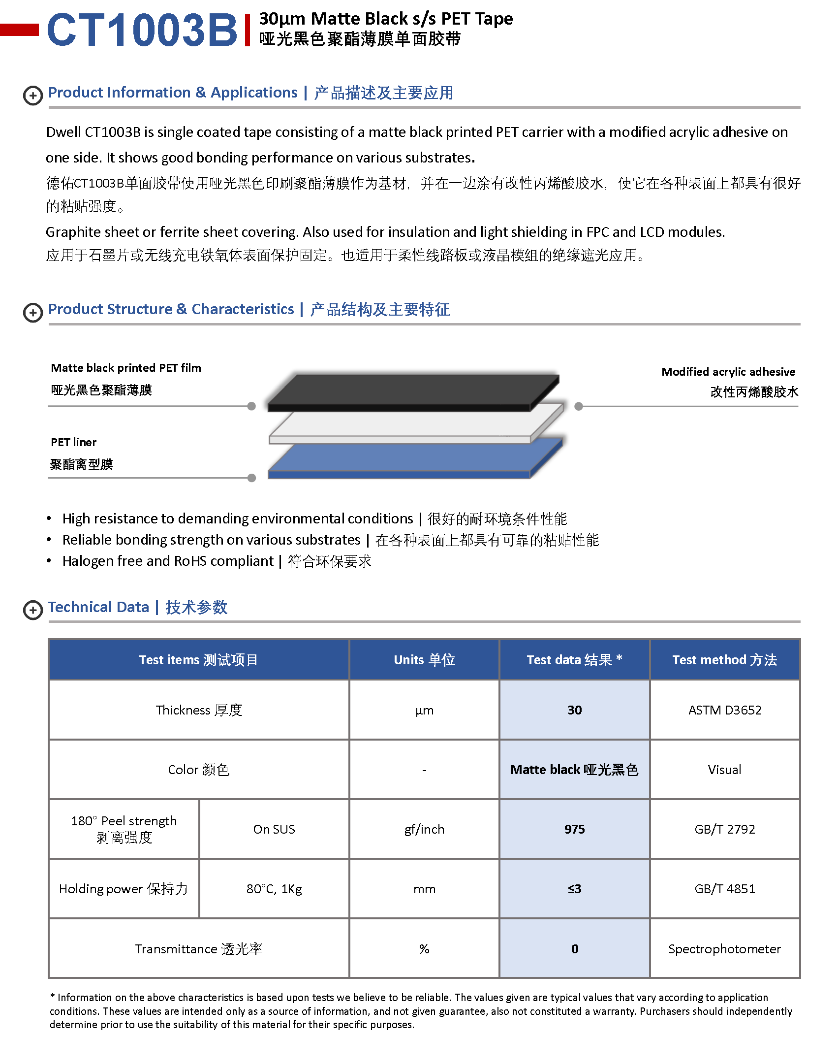 解決方案 > 單面薄膜膠帶 > Dwell CT1003B