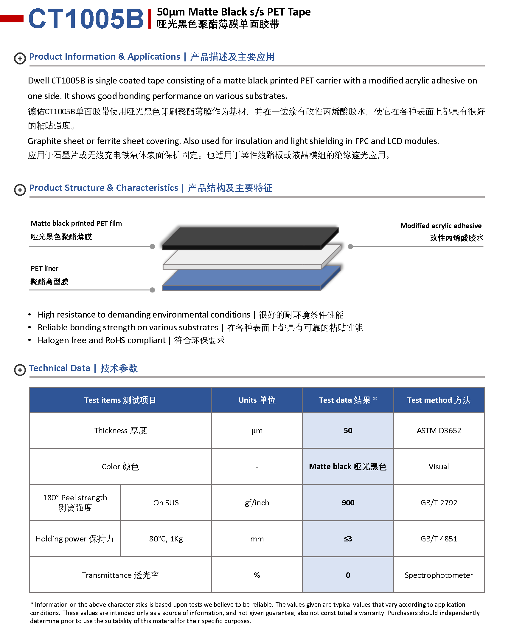 解決方案 > 單面薄膜膠帶 > Dwell CT1005B