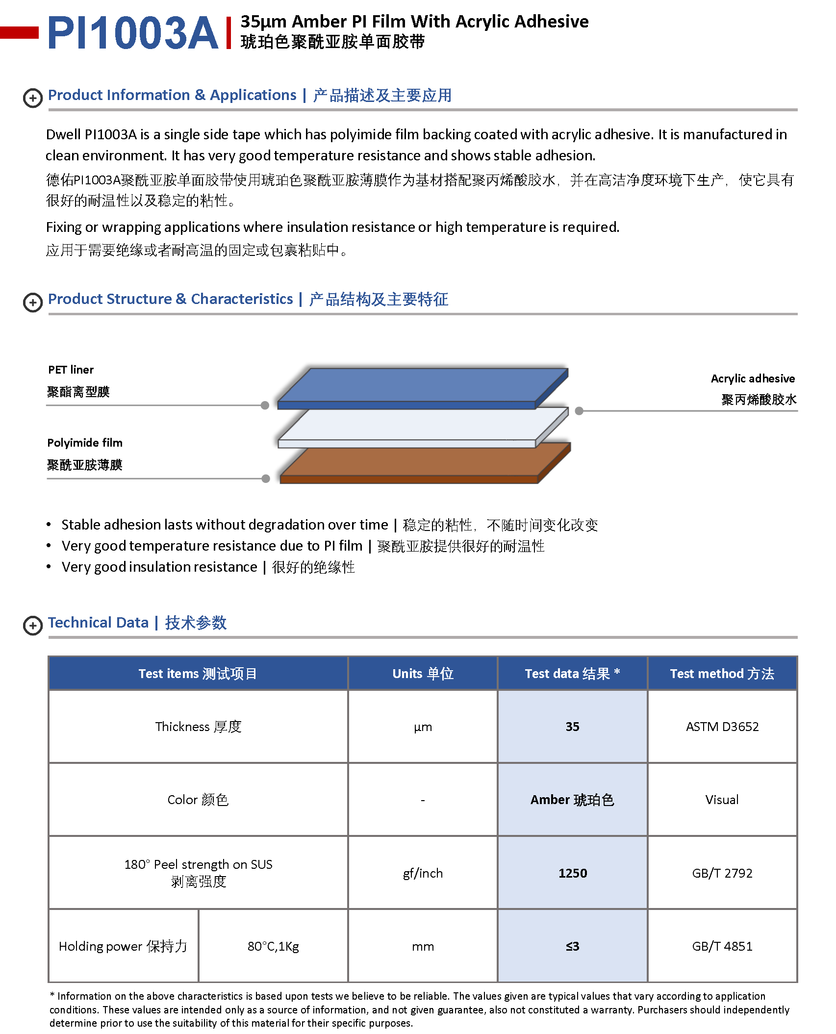 解決方案 > 單面薄膜膠帶 > Dwell PI1003A