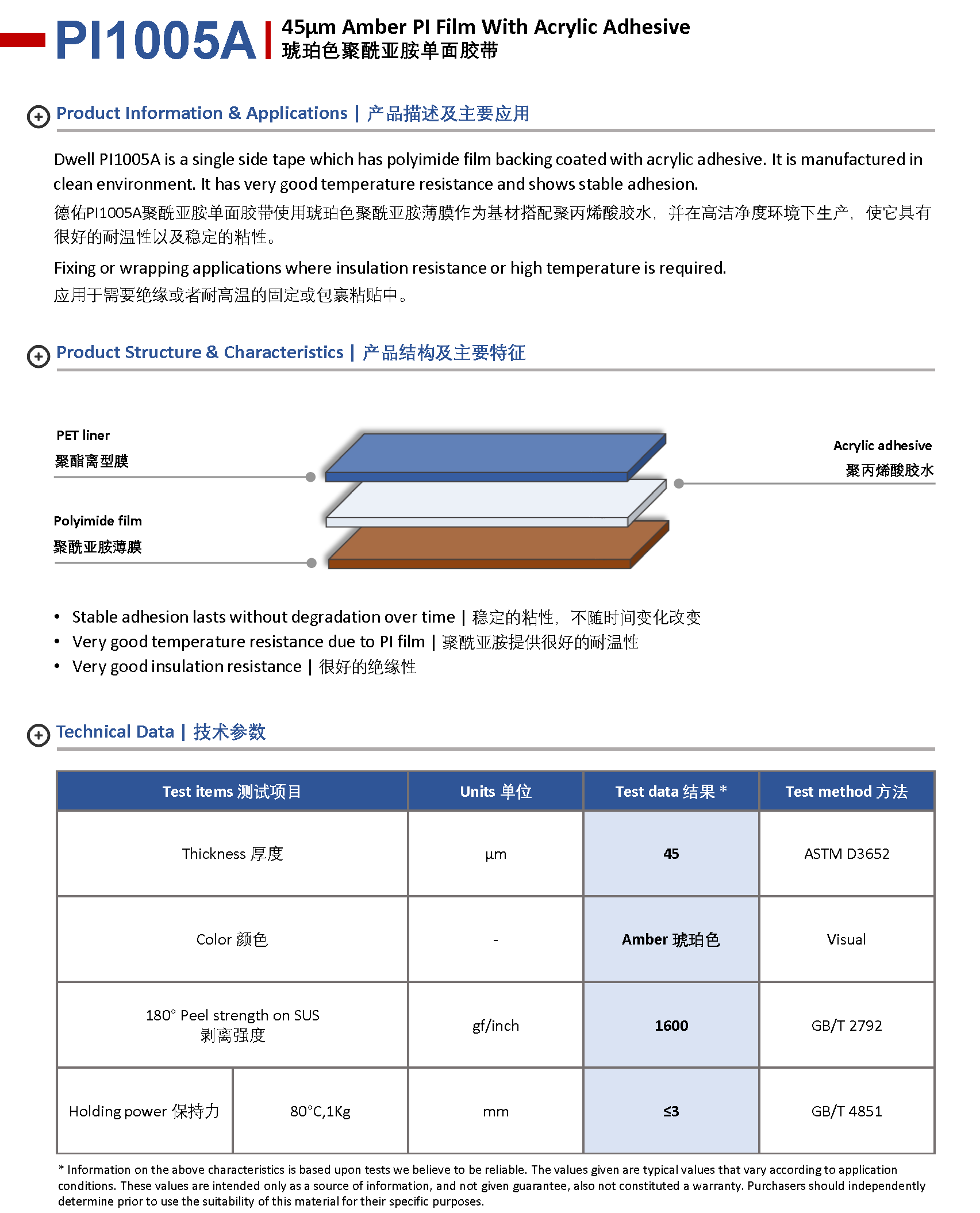 解決方案 > 單面薄膜膠帶 > Dwell PI1005A