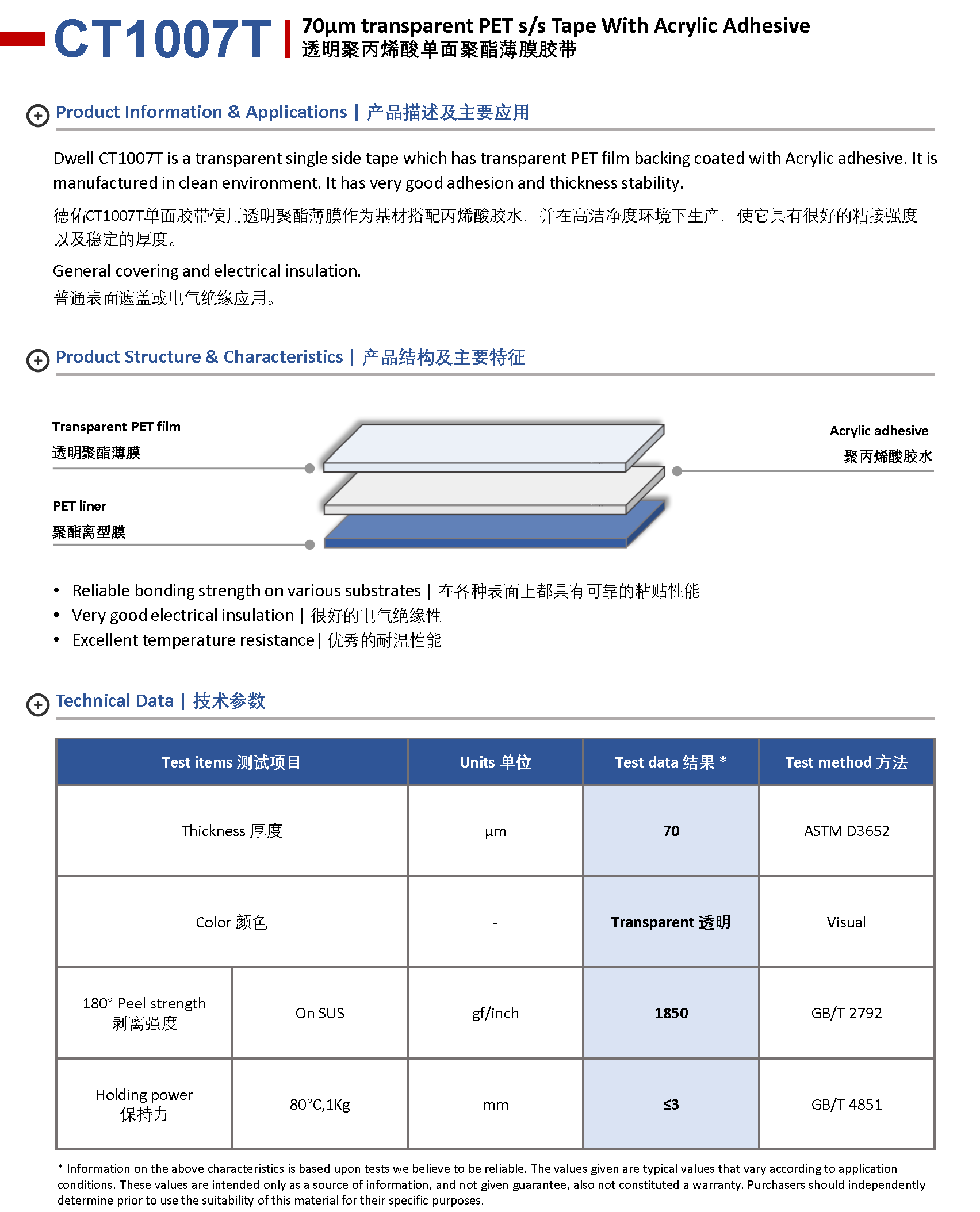解決方案 > 單面薄膜膠帶 > Dwell CT1007T