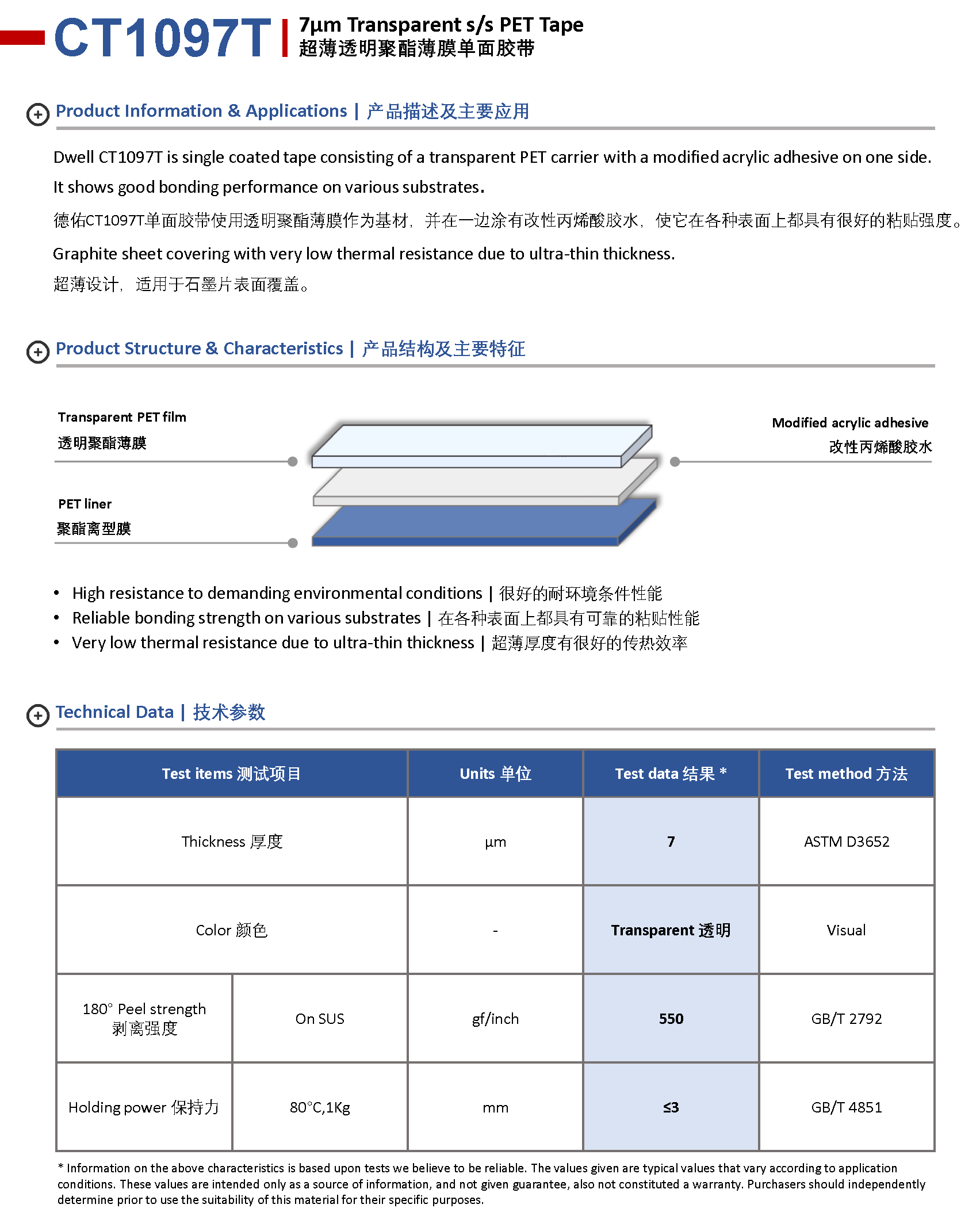 解決方案 > 單面薄膜膠帶 > Dwell CT1097T