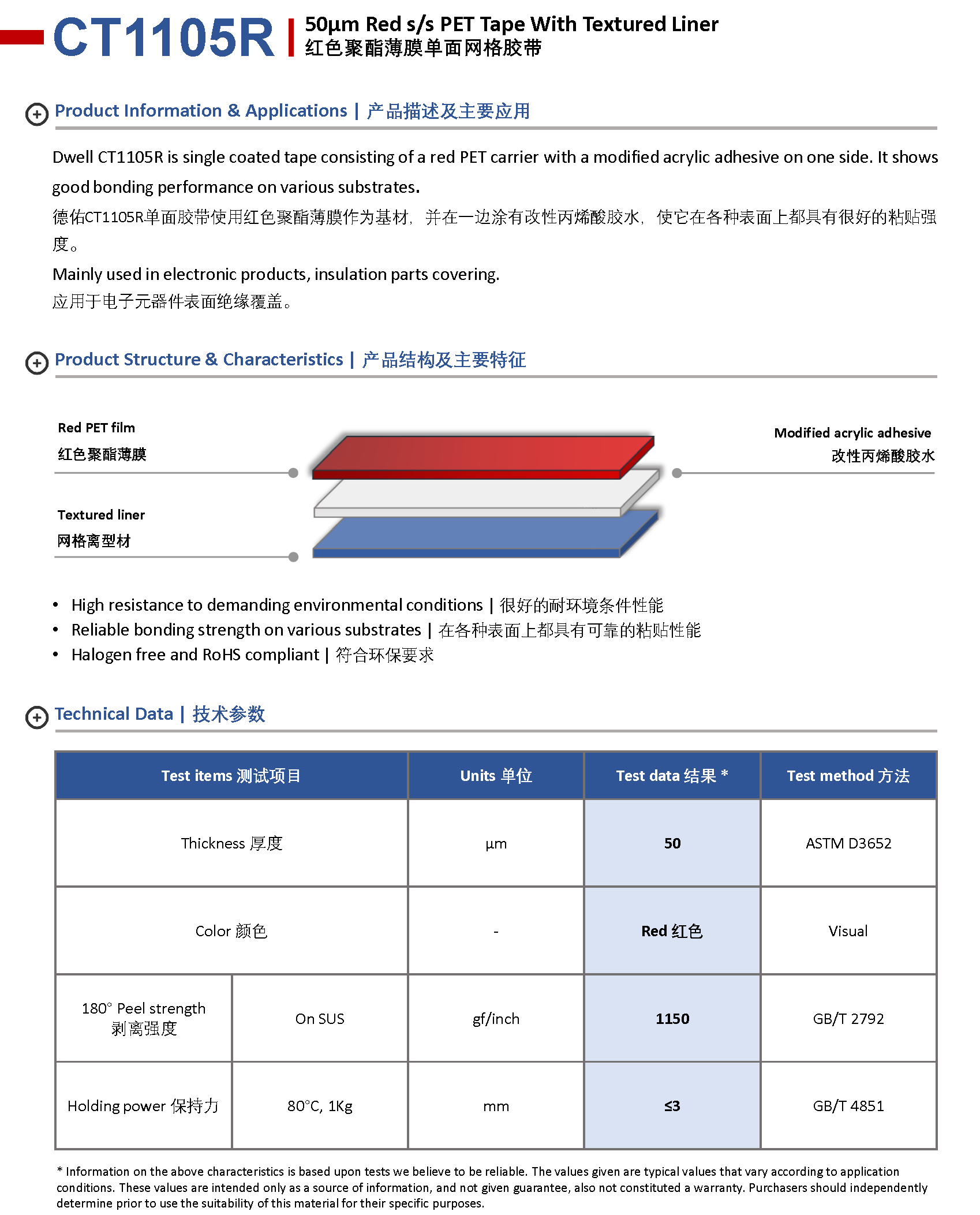 解決方案 > 單面薄膜膠帶 > Dwell CT1105R