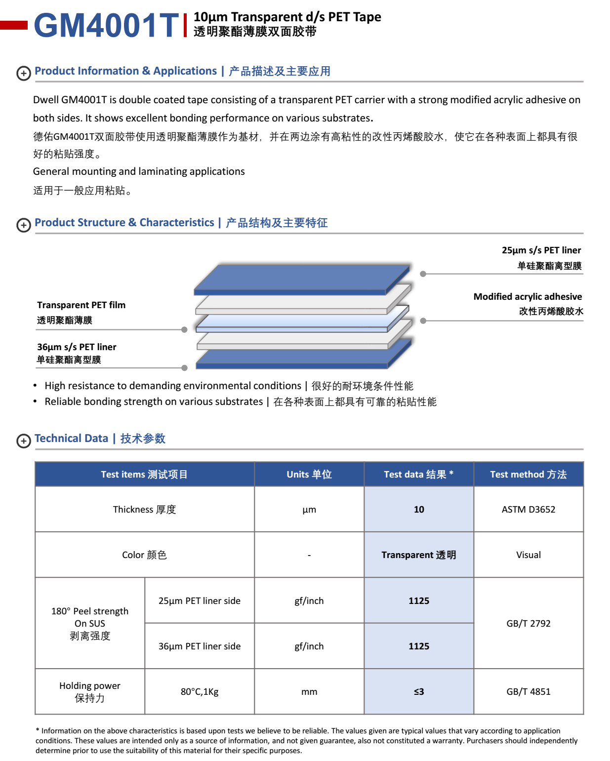 解決方案 > 雙面薄膜膠帶 > Dwell GM4001T