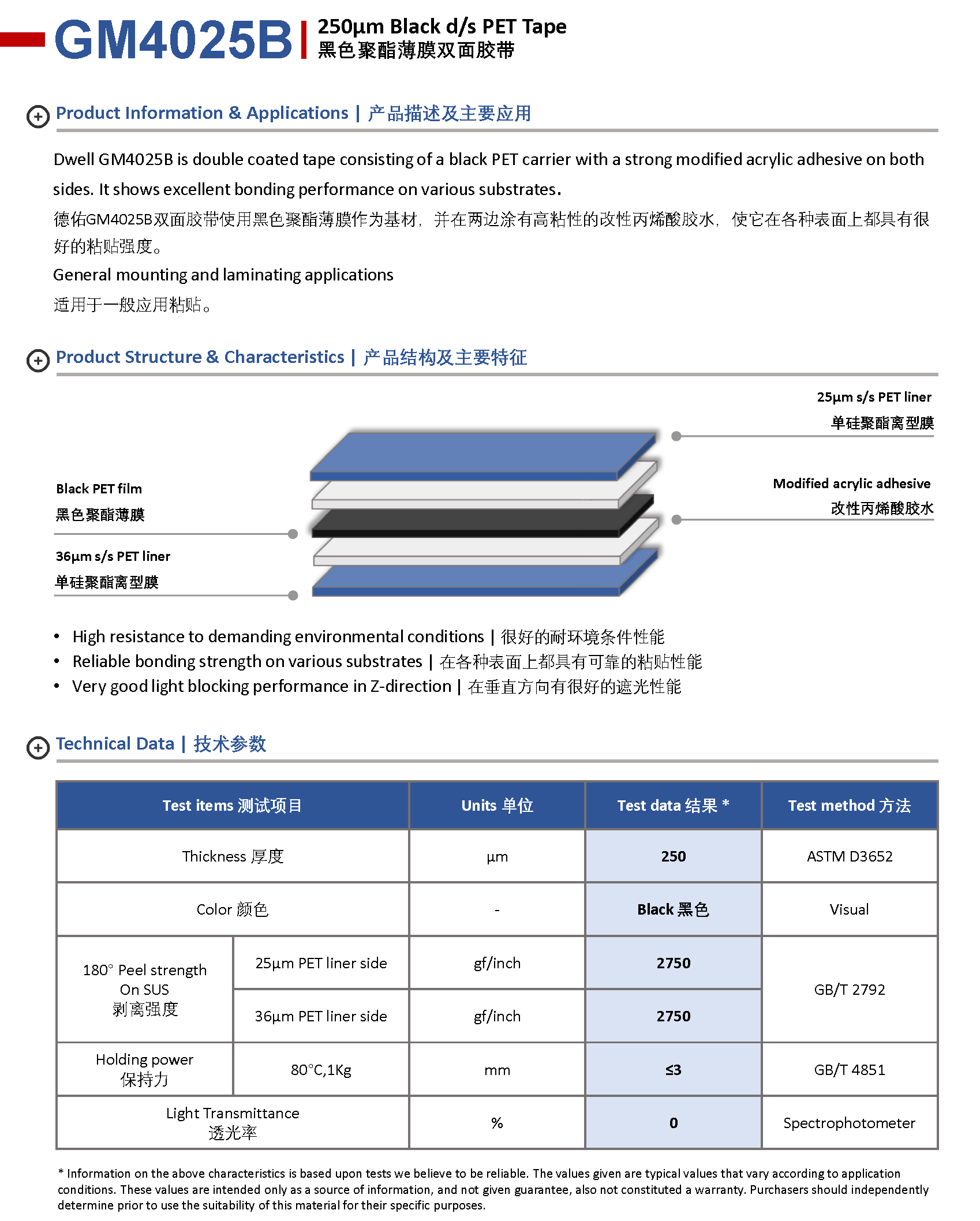 解決方案 > 雙面薄膜膠帶 > Dwell GM4025B