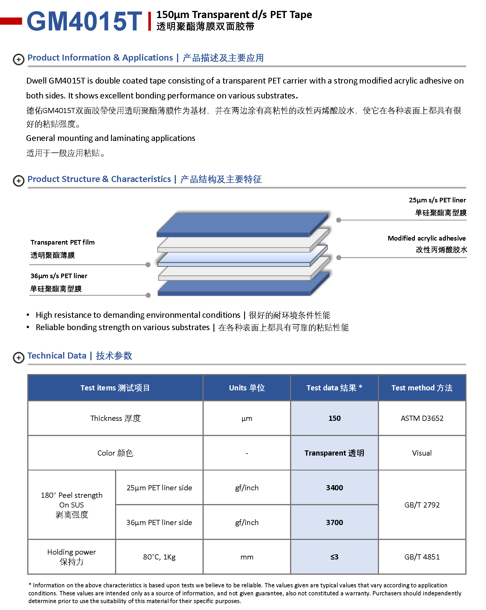 解決方案 > 雙面薄膜膠帶 > Dwell GM4015T