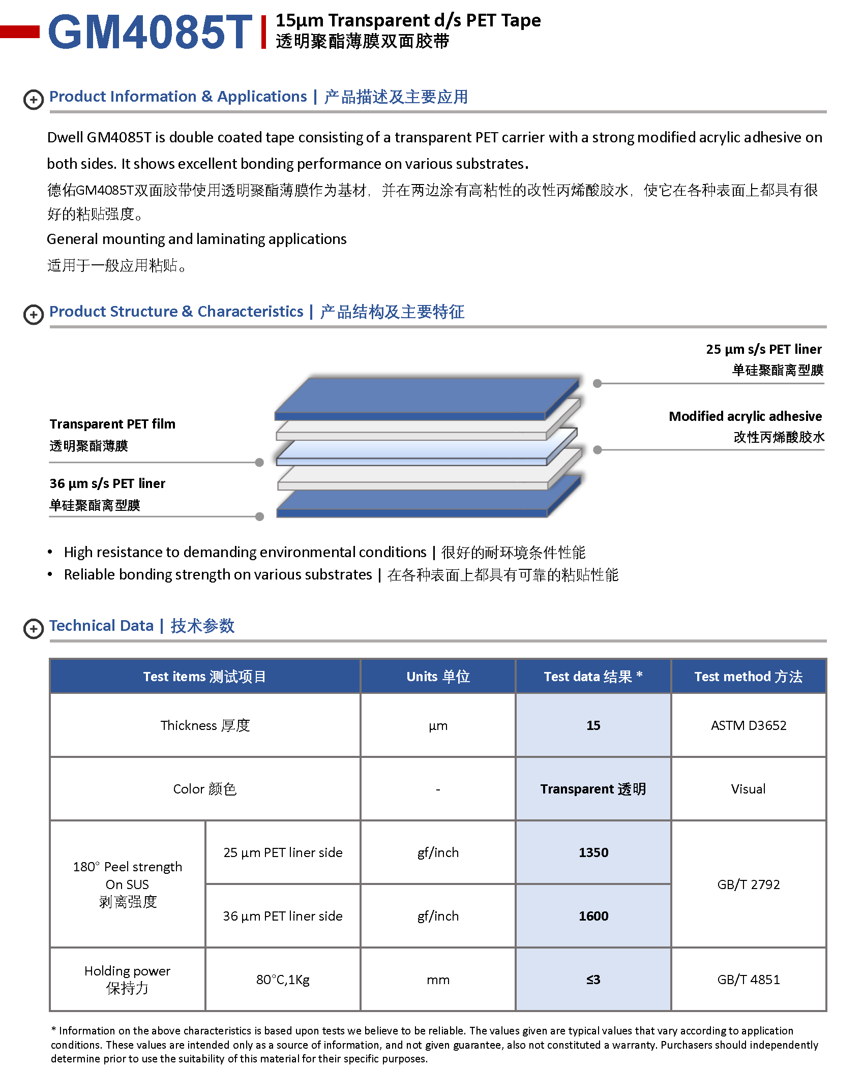 解決方案 > 雙面薄膜膠帶 > Dwell GM4085T