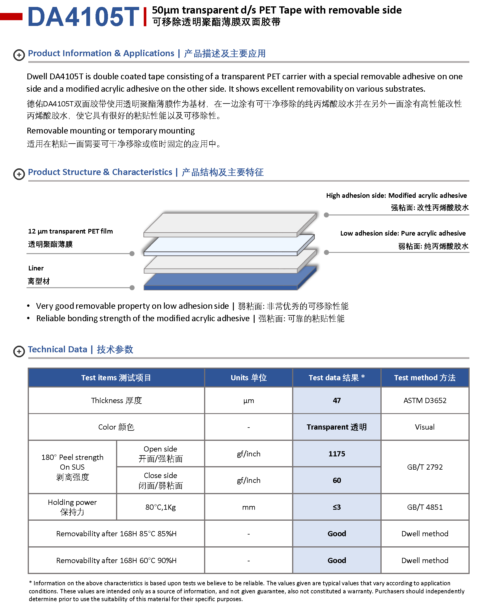 解決方案 > 雙面薄膜膠帶 > Dwell DA4105T