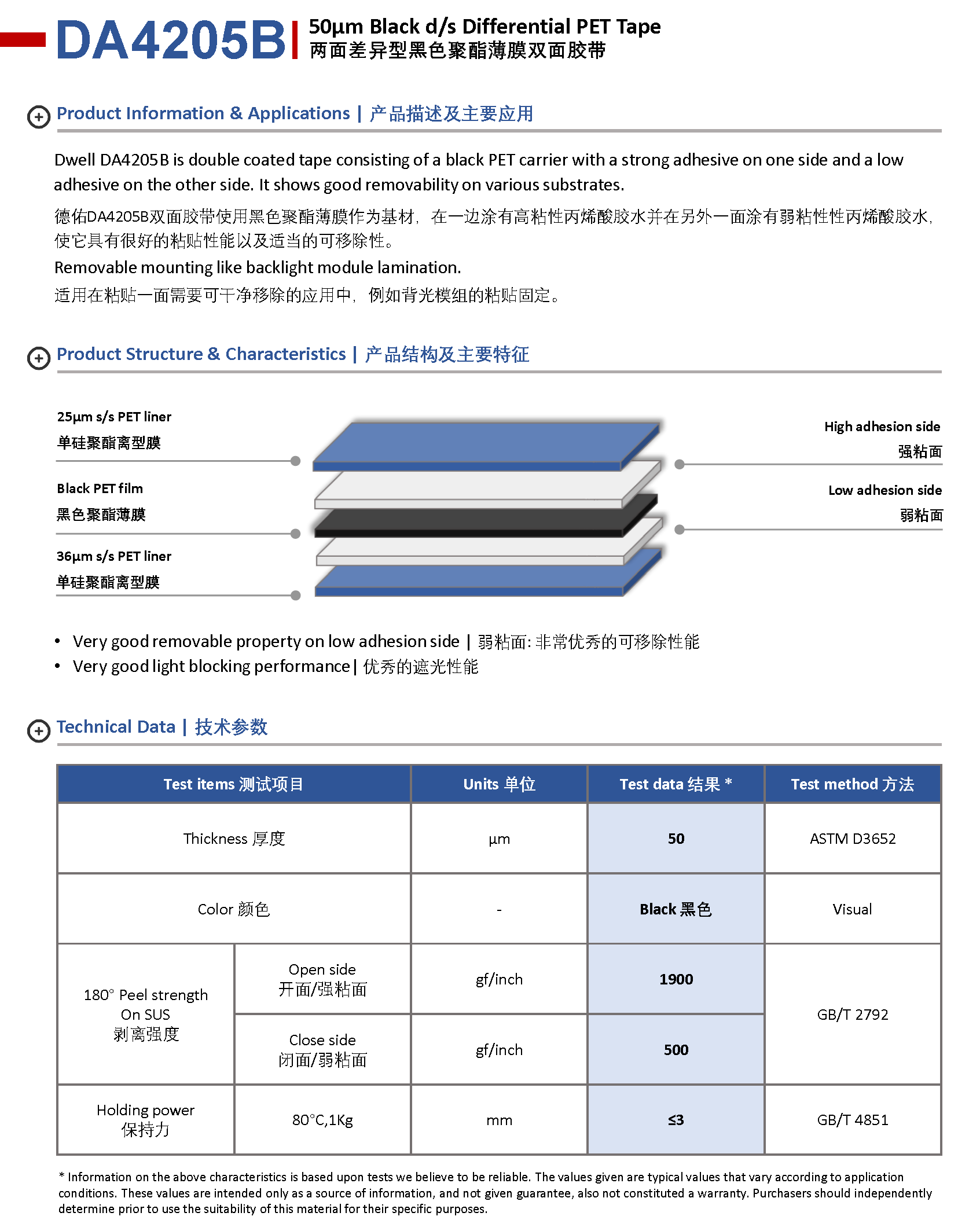 解決方案 > 雙面薄膜膠帶 > Dwell DA4205B