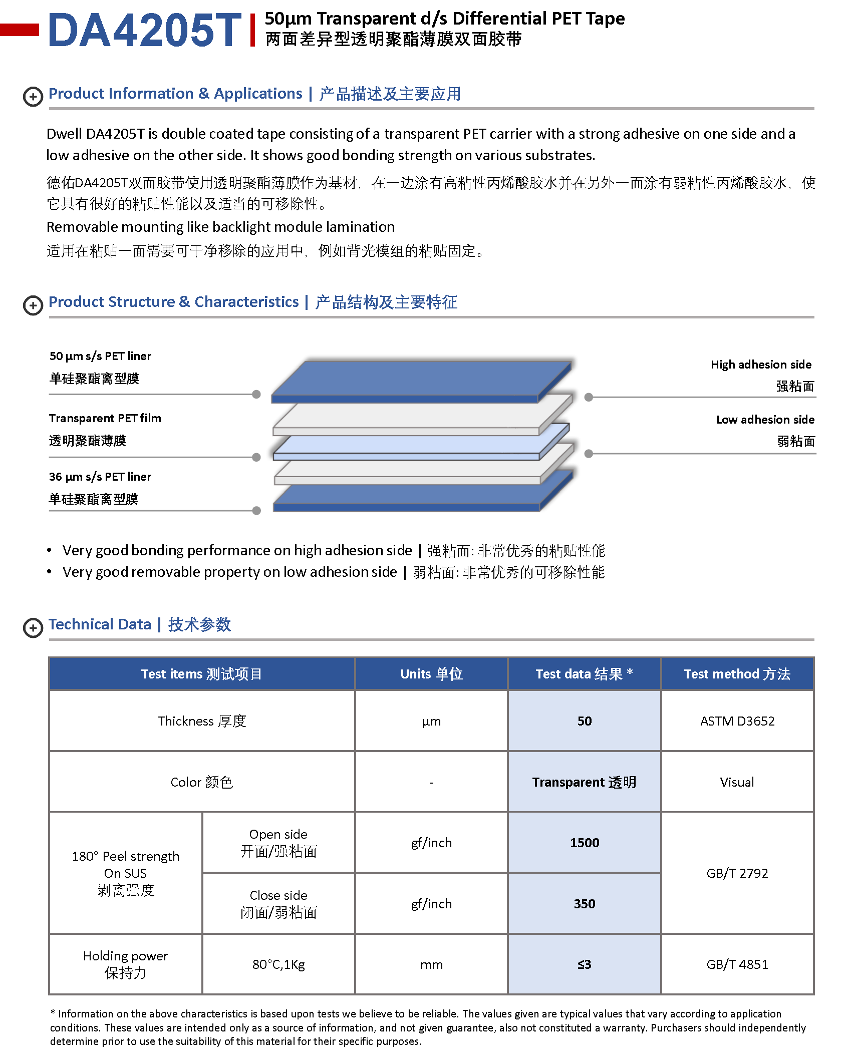 解決方案 > 雙面薄膜膠帶 > Dwell DA4205T