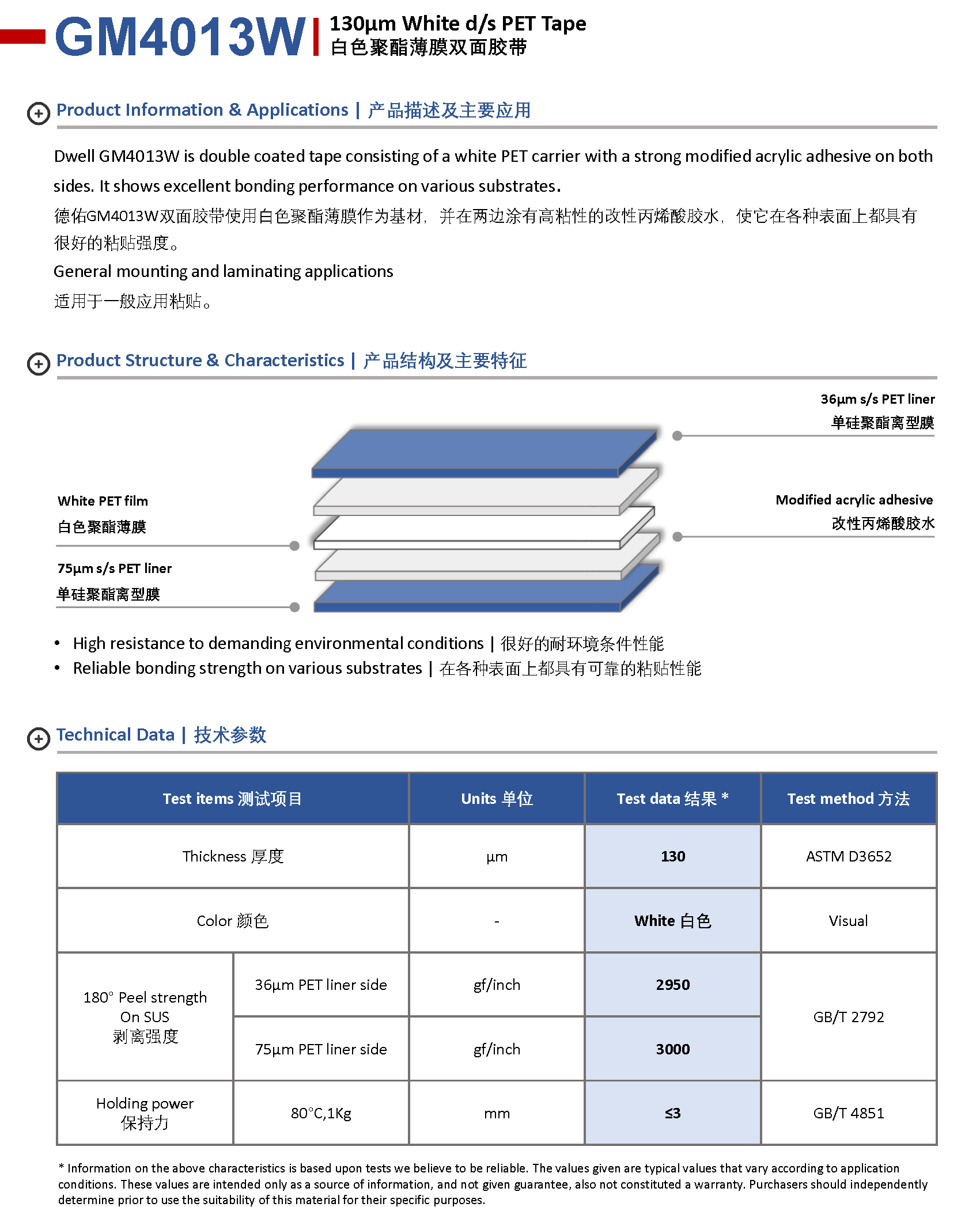 解決方案 > 雙面薄膜膠帶 > Dwell GM4013W